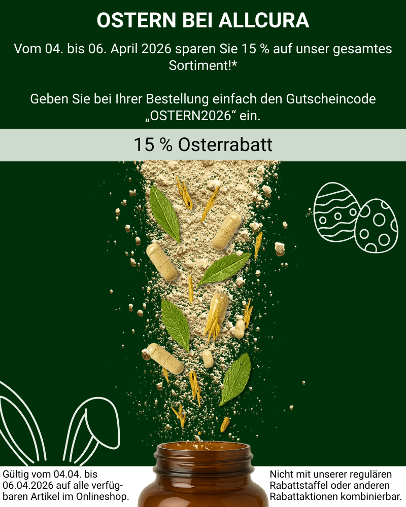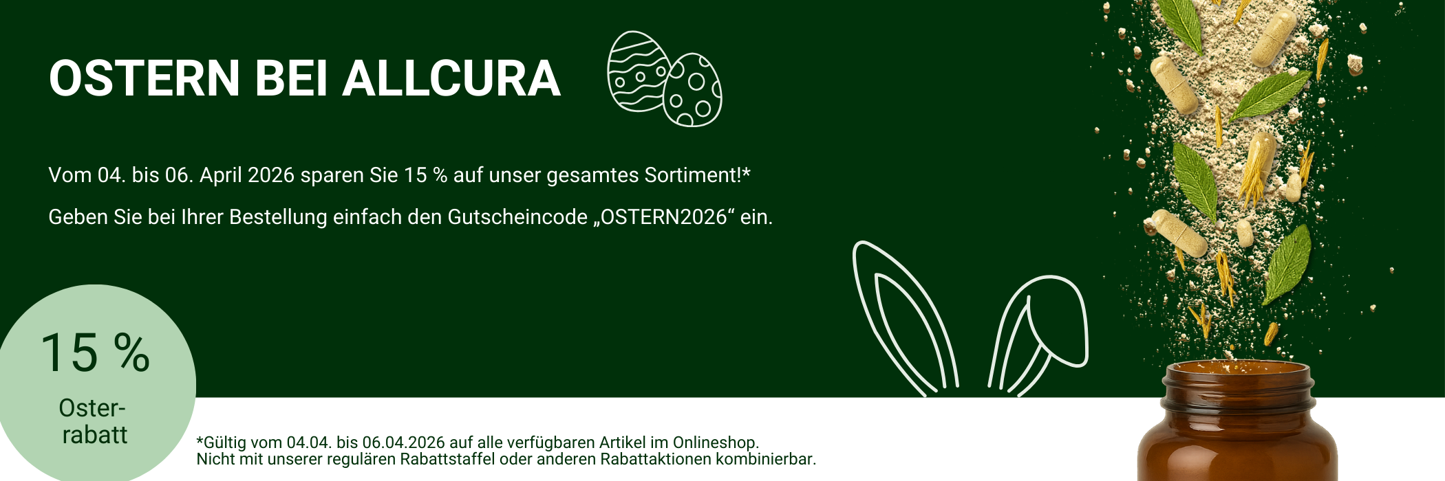 Seit über 40 Jahren steht allcura für hochwertige Naturheilmittel und natürliche Nahrungsergänzungsmittel. Als einer der führenden Anbieter verbinden wir langjährige Erfahrung mit echter Leidenschaft für natürliches Wohlbefinden.