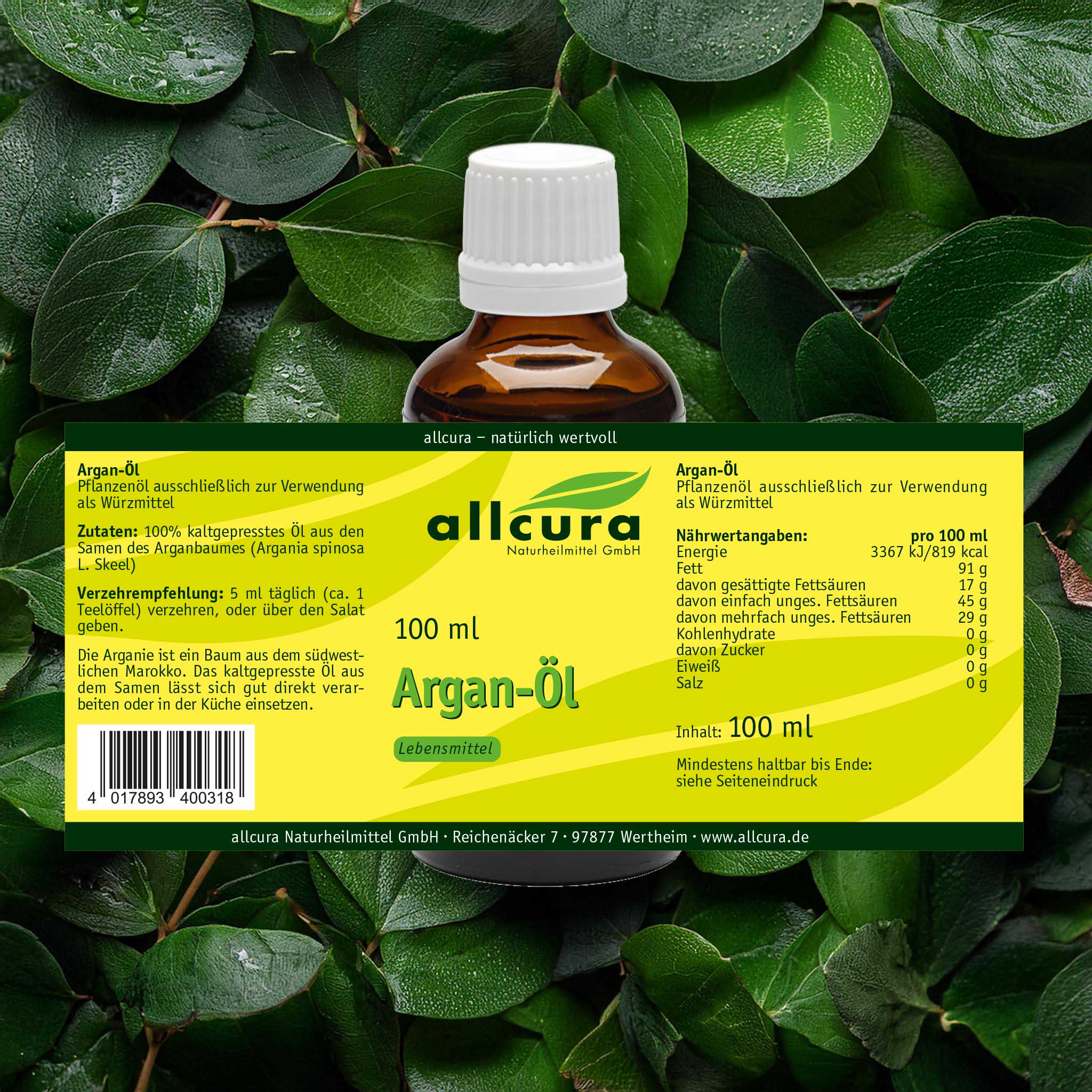- kaltgepresstes, 100% reines Arganöl