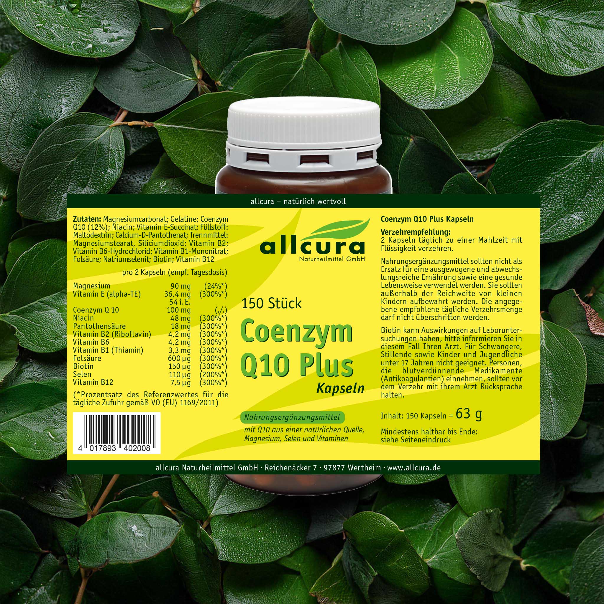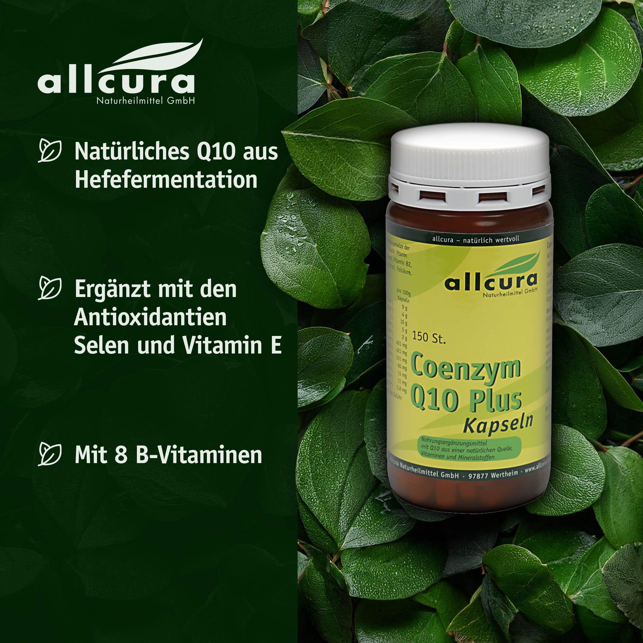 Mit den allcura Coenzym Plus Kapseln bekommen Sie wertvolles Coenzym Q10 ergänzt durch wichtige Vitamine und Antioxidantien. Niacin, Pantothensäure und Thiamin (Vitamin B1) tragen zu einem normalen Energiestoffwechsel bei und Selen und Vitamin E schätzen den Körper vor oxidativem Stress.
