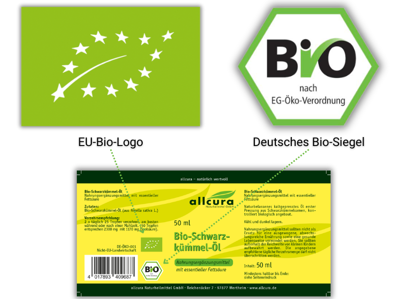 Neben dem EU-Bio-Logo ist häufig auch das klassische deutsche Bio-Siegel (siehe Bild rechts oben) auf den Produkten zu finden. Es war das erste Bio-Kennzeichen in Deutschland und gilt als Vorläufer des EU-Siegels. Auch dieses bestätigt innerhalb Deutschlands die Einhaltung der strengen Anforderungen der EG-Öko-Verordnung.