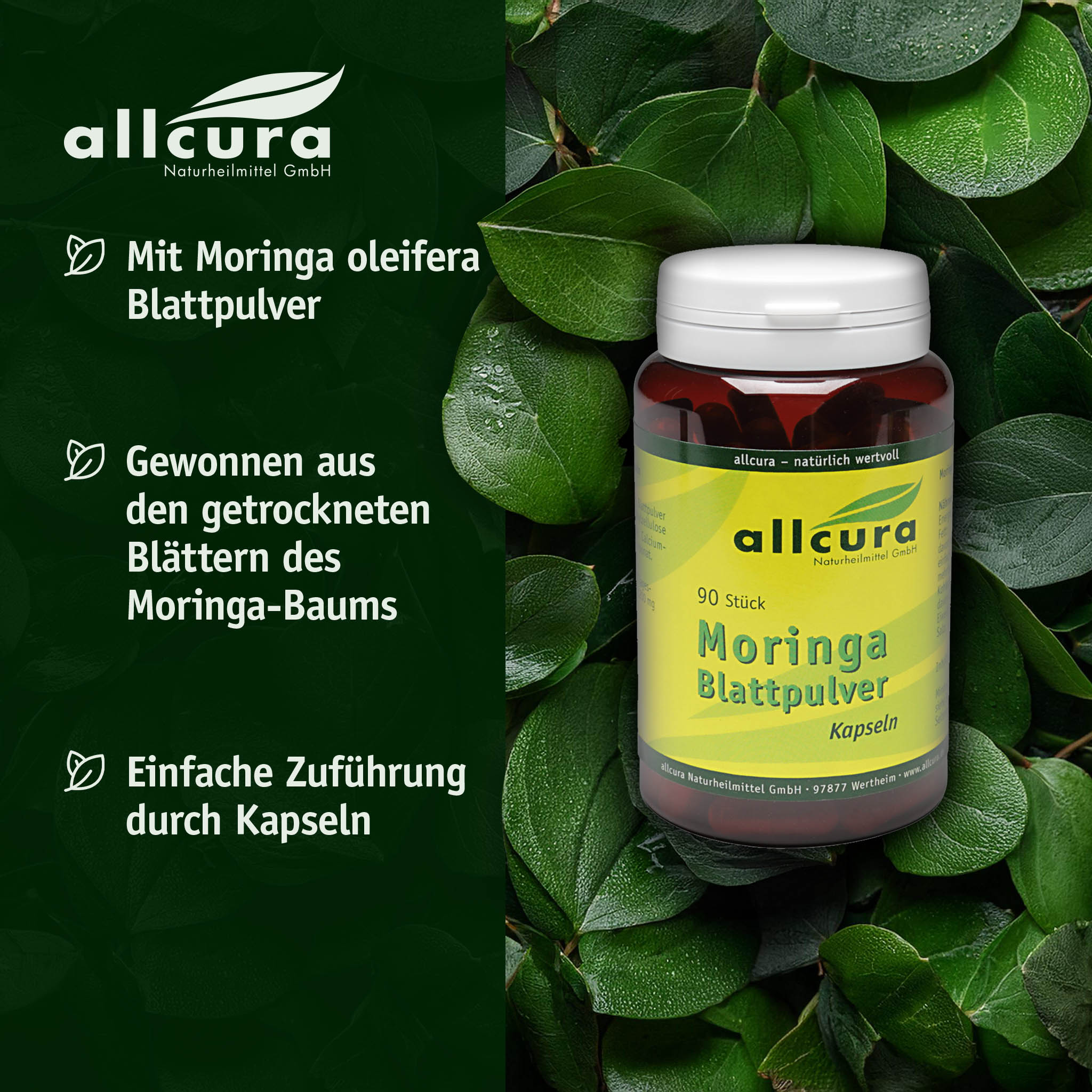 3 Kapseln enthalten 1200 mg Moringa Blattpulver.