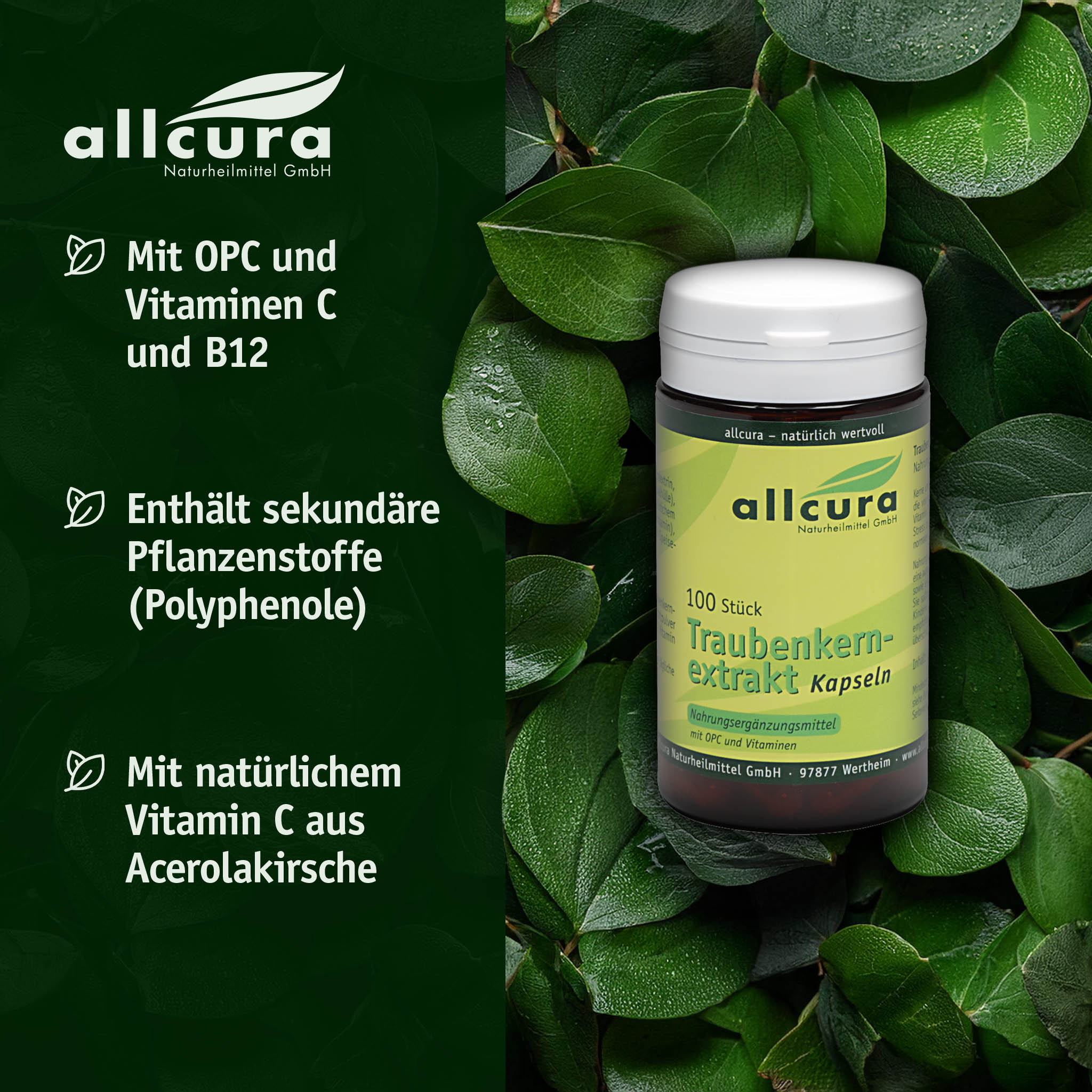 Der Extrakt aus den Kernen und Schalen roter Weintrauben enthält sekundäre Pflanzenstoffe (Polyphenole), die von natürlichem Vitamin C aus Acerolakirsche unterstützt wird. Vitamin C trägt dazu bei, die Zellen vor oxidativen Stress zu schützen. Vitamin B 12 trägt zu einem normalen Homocystein-Stoffwechsel bei.