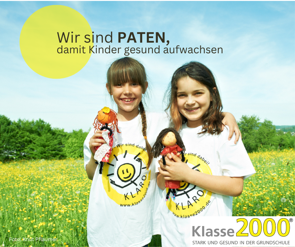 Ein besonderer Schwerpunkt liegt für uns im Bereich Bildung und Prävention. Deshalb unterstützen wir als Pate das bundesweite Schulprogramm Klasse2000. Das Programm begleitet Kinder an Grund- und Förderschulen von der 1. bis zur 4. Klasse und vermittelt altersgerecht wichtige Lebenskompetenzen. Themen wie gesunde Ernährung, Bewegung, Entspannung, der Umgang mit Gefühlen sowie soziales Miteinander werden spielerisch und praxisnah in den Schulalltag integriert.