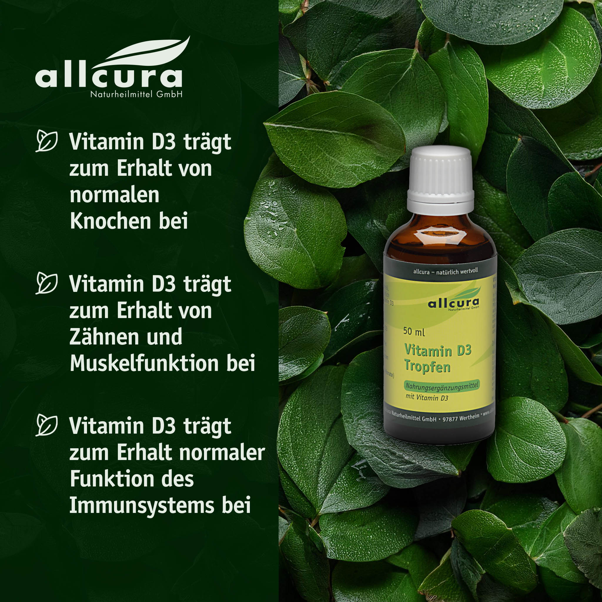 1 x täglich 10 Tropfen = 1000 iE = 25 µg Vitamin D3*.